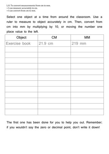 Measuring Length And Converting Between Cm And Mm Teaching Resources