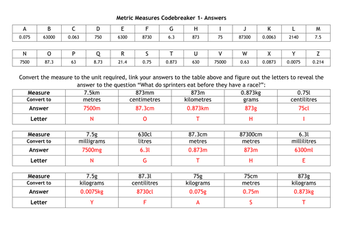 Ks3 Worksheet L5 Worksheet Converting Metric Mas Teaching Resources